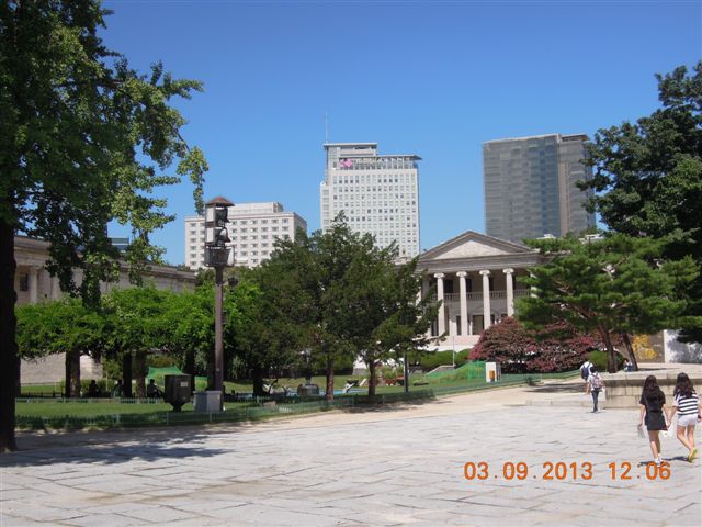 Deoksugung, also known as Gyeongun-gung, Deoksugung Palace, or Deoksu Palace, is a walled compound of palaces in Seoul that was inhabited by various Korean royalties until the colonial period around the turn of the 20th century. It is one of the "Five Grand Palaces" built by the kings of the Joseon Dynasty. The buildings are of varying construction, including some of natural cryptomeria wood), painted wood, and stucco. Some buildings were built in Western style. In addition to the traditional palace buildings, there are also forested gardens, a statue of King Sejong the Great and the National Museum of Art, which holds special exhibitions. The palace is located near the City Hall Station. Deoksugung, like the other "Five Grand Palaces" in Seoul, was intentionally heavily destroyed during the colonial period of Korea. Currently, only one third of the structures that were standing before the occupation, remains.